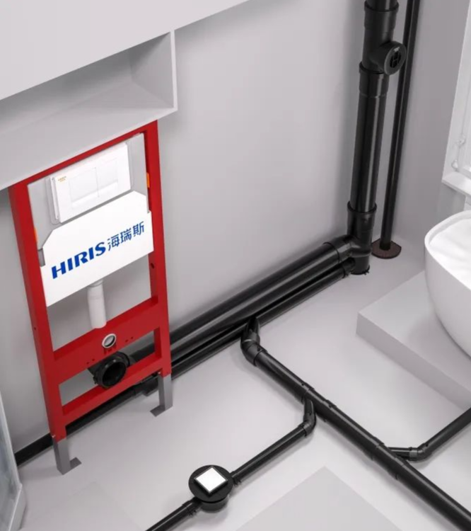海瑞斯同层排水系统的管道不穿越楼板,在本层内汇入主管。这种设计实现了厚实管壁与楼板的双重 “隔音”,为你打造静谧的居家空间。