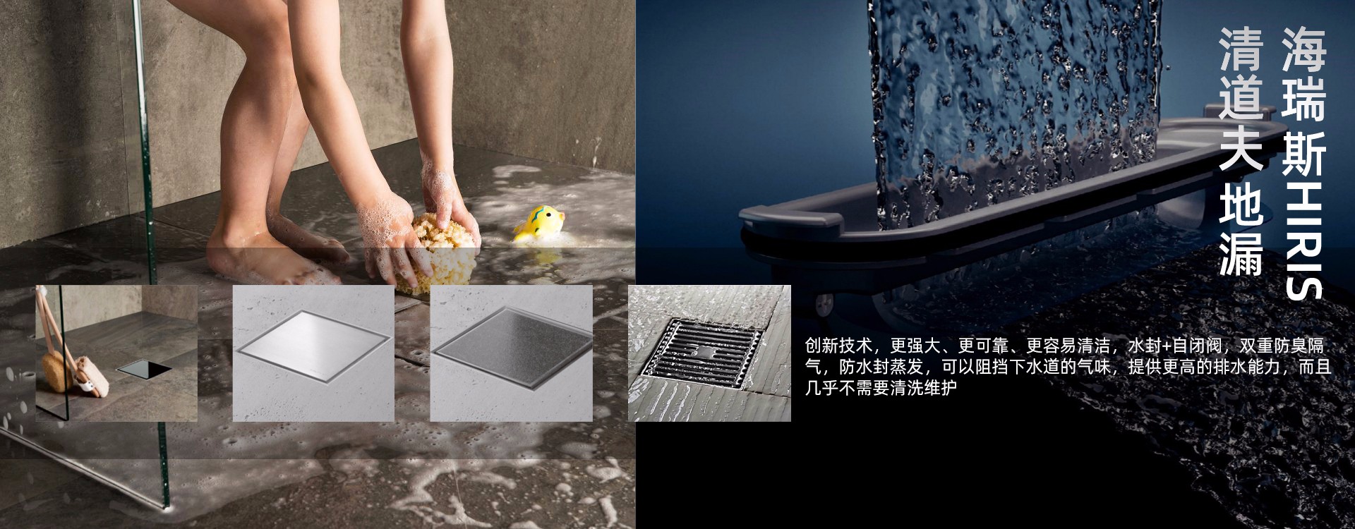 海瑞斯为各类卫生器具提供和下水管道连接的各类防臭隔气的排水组件,其中研发与创新的地漏:更大的流量、更少的清洁、更好的防臭,解决了厨卫空间的排水不畅、难以清洁、异味等问题。