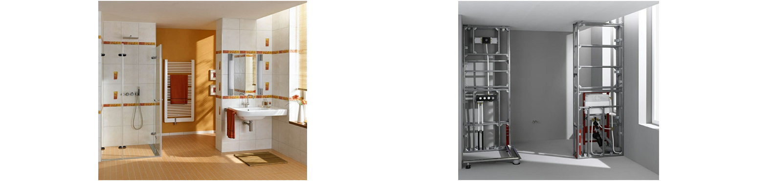 小型隔断对于壁挂马桶、地漏、置物层板和壁龛的空间都非常实用,广泛应用于卫生间规划,并增加设计感。通过百变墙系统,这些安装就变得更加简易。只要有足够的想象力,卫生间墙面设计就有无限的可能性。在用于湿区淋浴时,我们可以提供适合于湿区环境的墙面内层板。